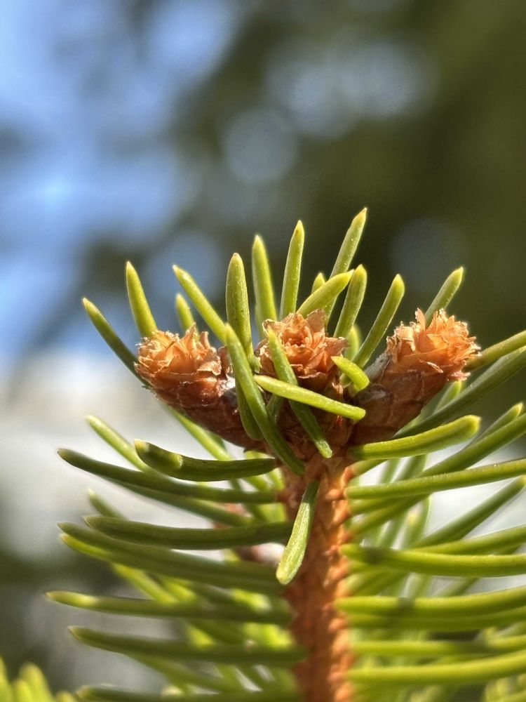 冬芽はドイツトウヒよりひと回り大きく、もっと明るい褐色