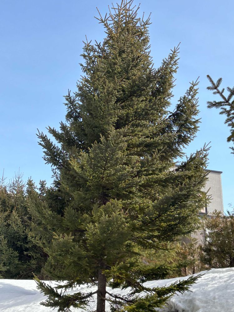 最近雪が溶けたのでよく観察すると、2種類の違うトウヒが植えられてるみたいです
