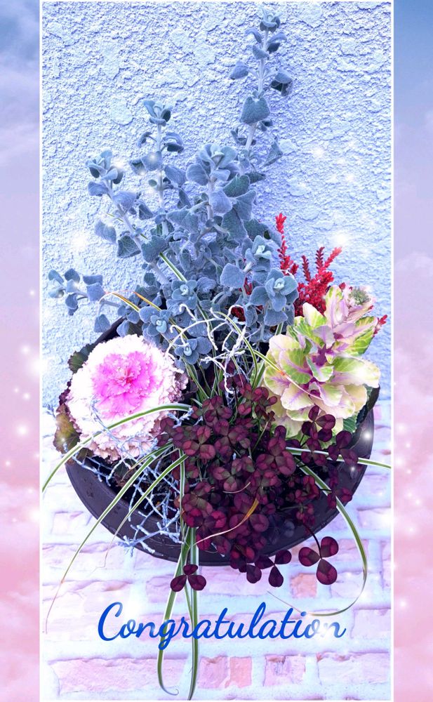 玄関先の寄せ植えでお祝いさせて貰いますね~🥰