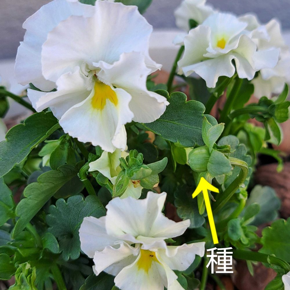 白いビオラに種🫘