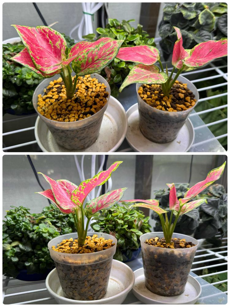 ①②アグラオネマは購入した水挿しから赤玉土と鹿沼土主体の培養土にし、鉢は水分と根の状態が分かるよう半透明にしてます😊