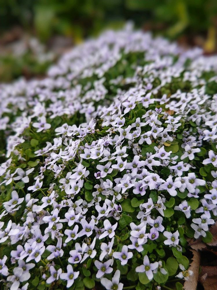 公園で咲く、イオノプシジウム。グランドカバーのように広がっています。