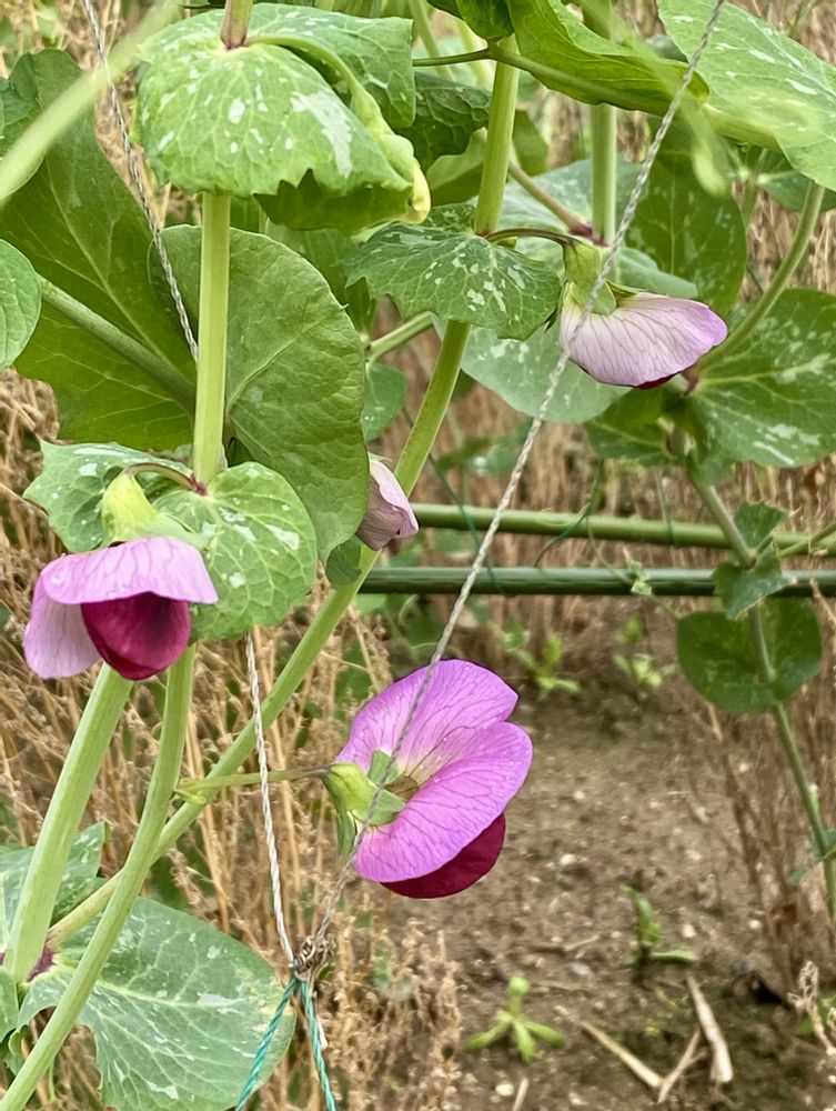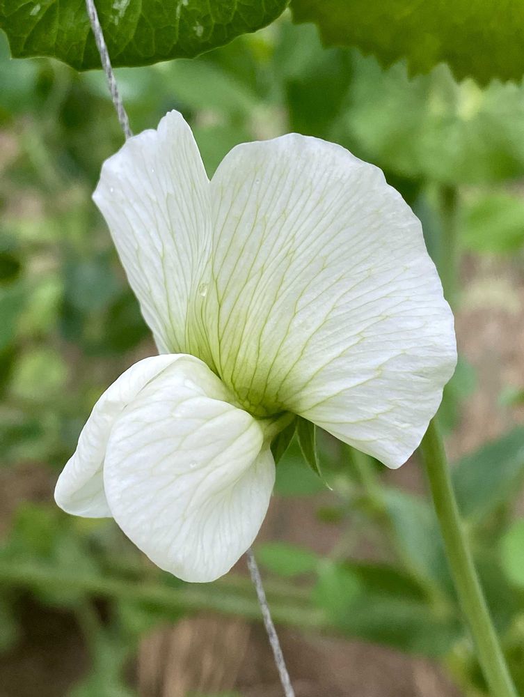 エンドウ豆類の代表的な2種類を挙げましたが、もう1種類グリーンピースが有ります。さて、その花の色は赤・白どちらでしょう?