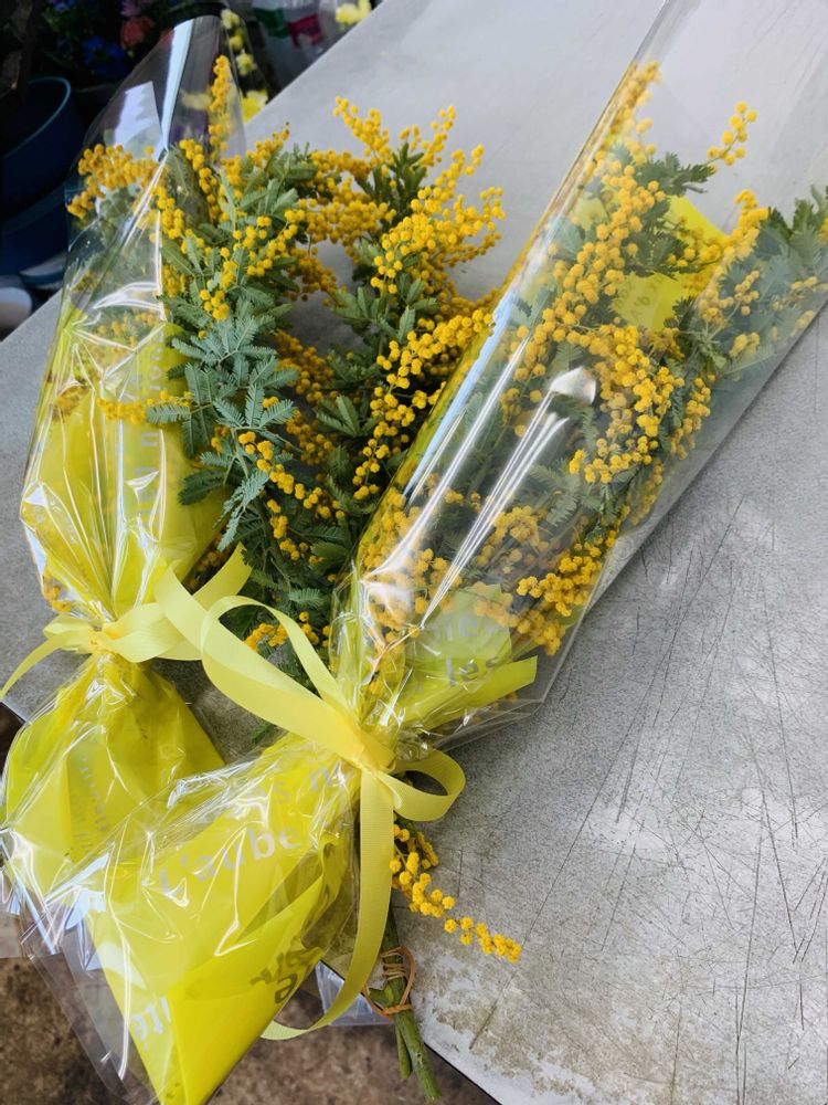 花屋さんに行ったら「ミモザ」があったので、小さな花束にして貰いました💐