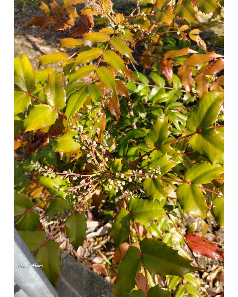 柊南天(ヒイラギナンテン)の蕾がふくらんできていました🤗