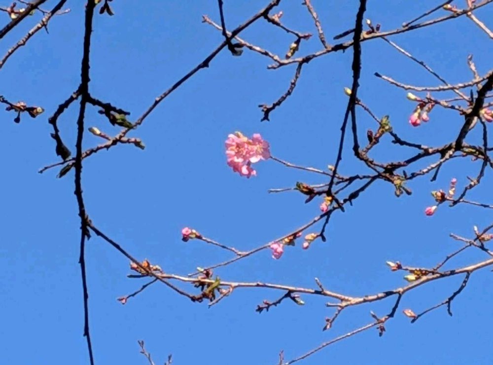 昨日一番花を認めた河津桜…