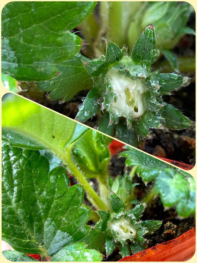 可愛い苺咲きそう💖白いお花少し見えてきてますね💖