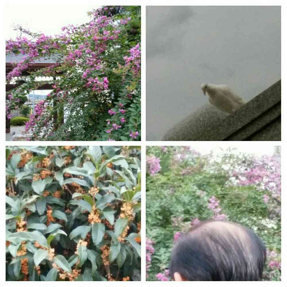 萩の花も金木犀も満開になってました💞右上は最近実家に居着いた白い鳩だって、迷子かな?そして長年温めてた企画萩の花と○○のコラボ(笑)父は気づかず😁