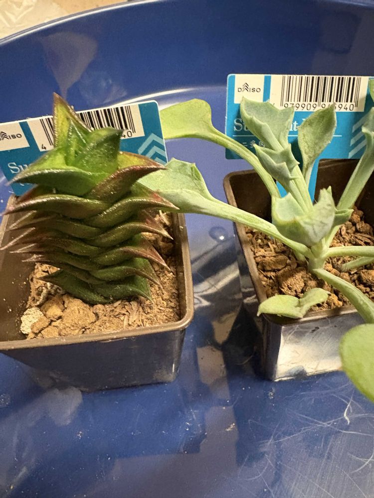 帰ってグーグル先生に調べてもらったら左がハオルチア ビスコーサ?、右がマサイの矢尻?と教えて下さりました。