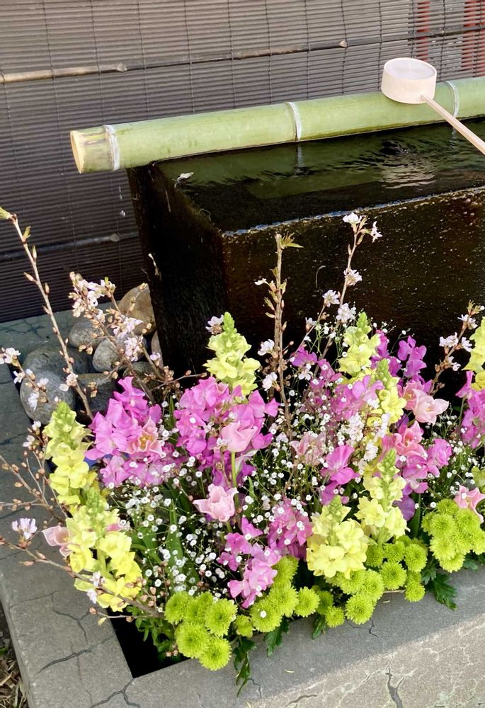 花手水舎のアレンジが変わってました💐