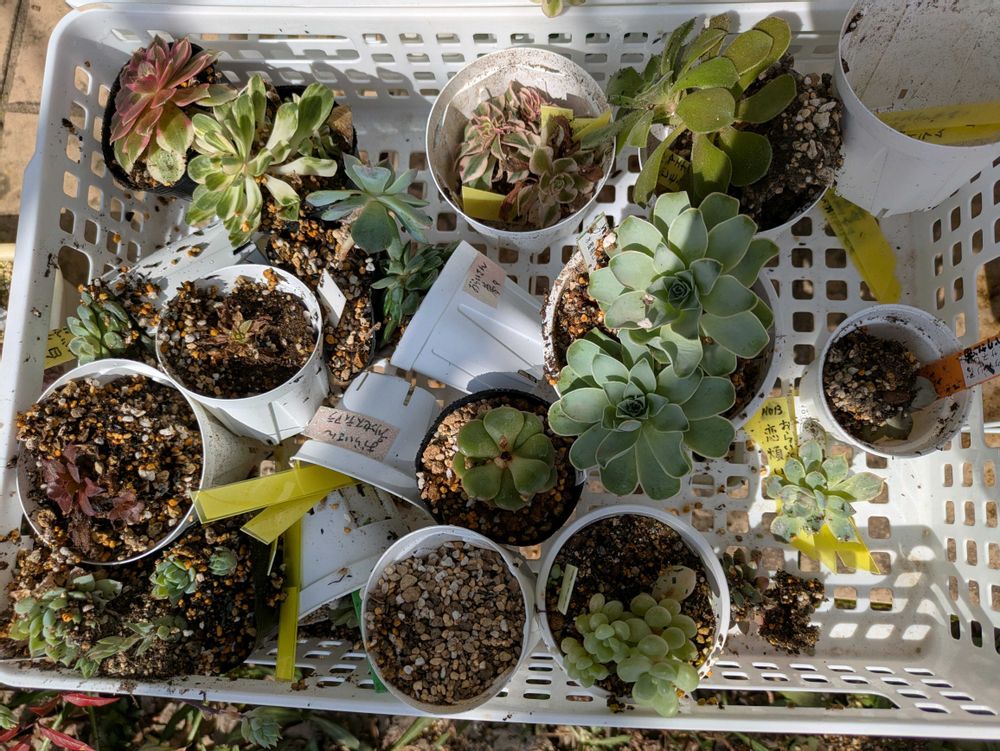 ⑤ 😭トレイ蹴散らし鉢苗をトレイに回収してところで 今日のお片付けにはなりませんでした😰 おらいさん苗の葉挿しの鉢上げしたものがメインだったトレイ どれかわかるかなぁ まだ小さいから特徴もよくわからないです😰