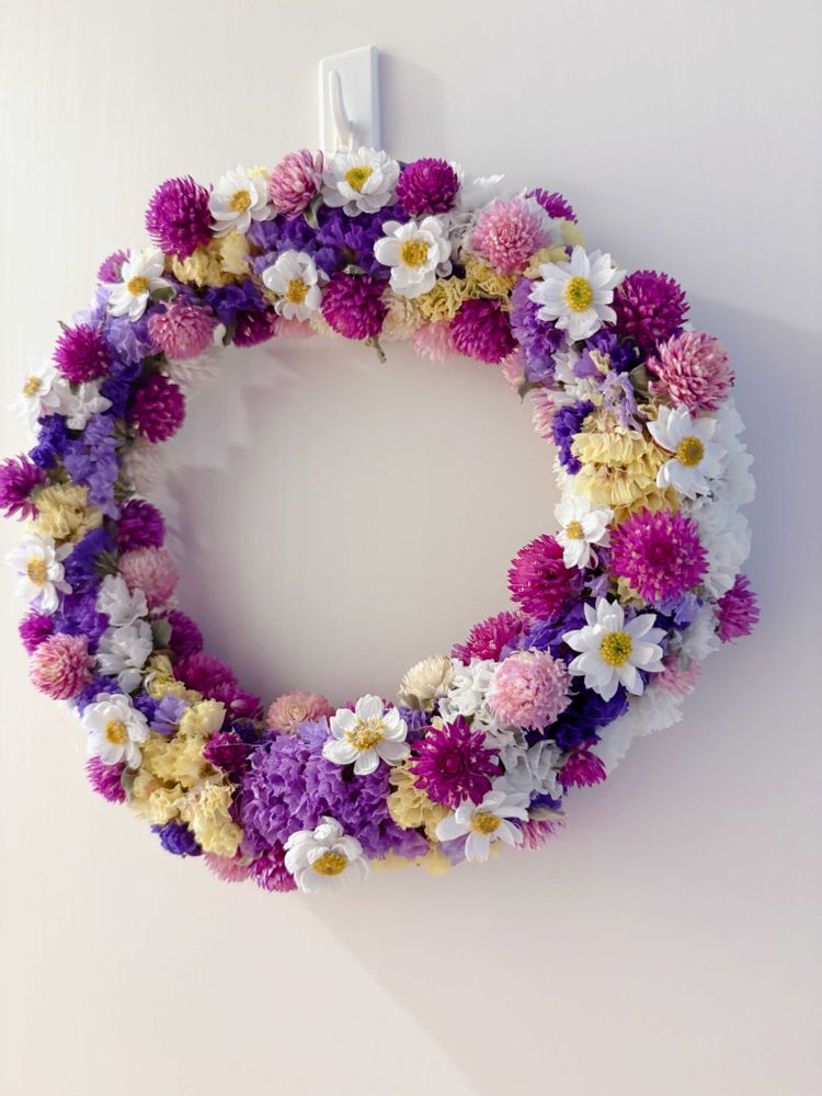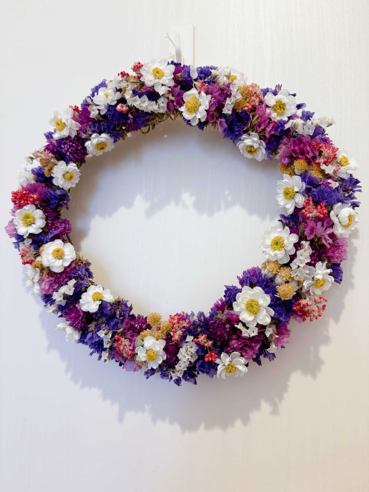 家で育ったお花中心のリースと言うのも良いですね。何種類のお花を使って作られたのですか?