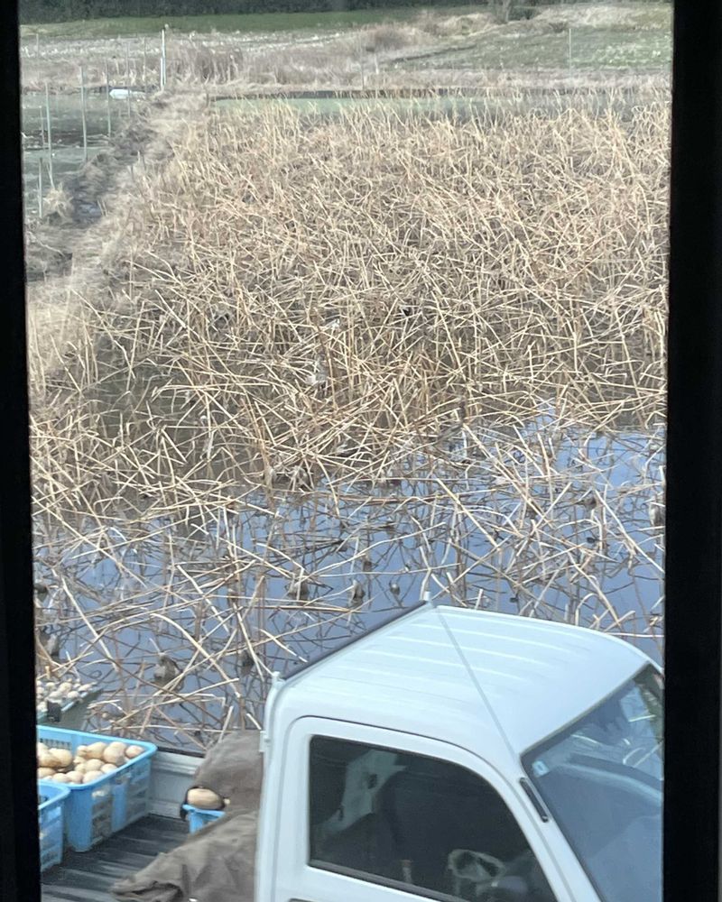レンコンを収穫をしていました🛻軽トラの荷台のレンコン、真っ白で大きいです