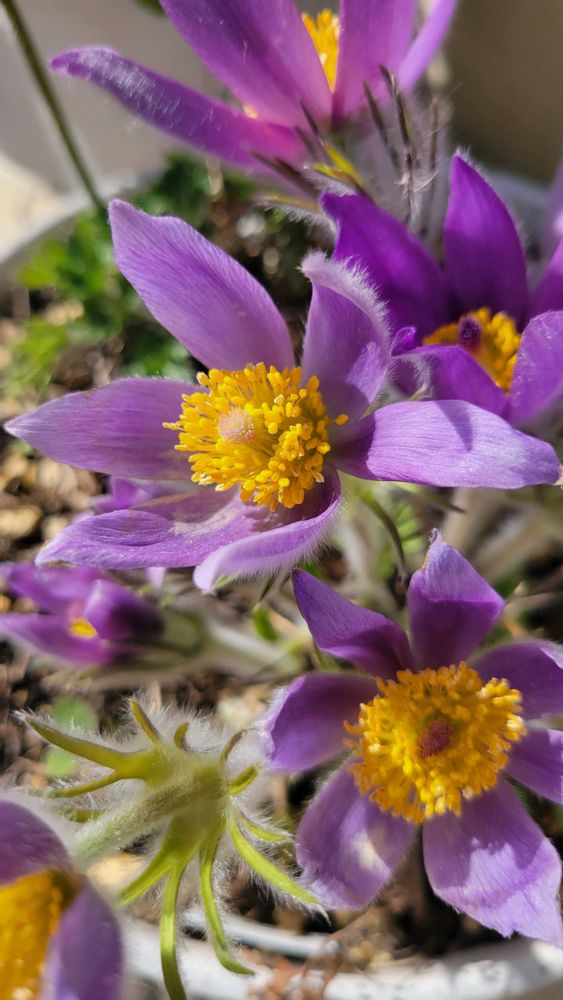 オキナグサというお花です🌼綺麗な色ですよね!全体に短い毛が生えていてさわり心地も最高です😍