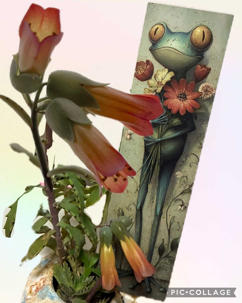 月の雫さんに頂いた🐸さんも💐持って見てるね🧡