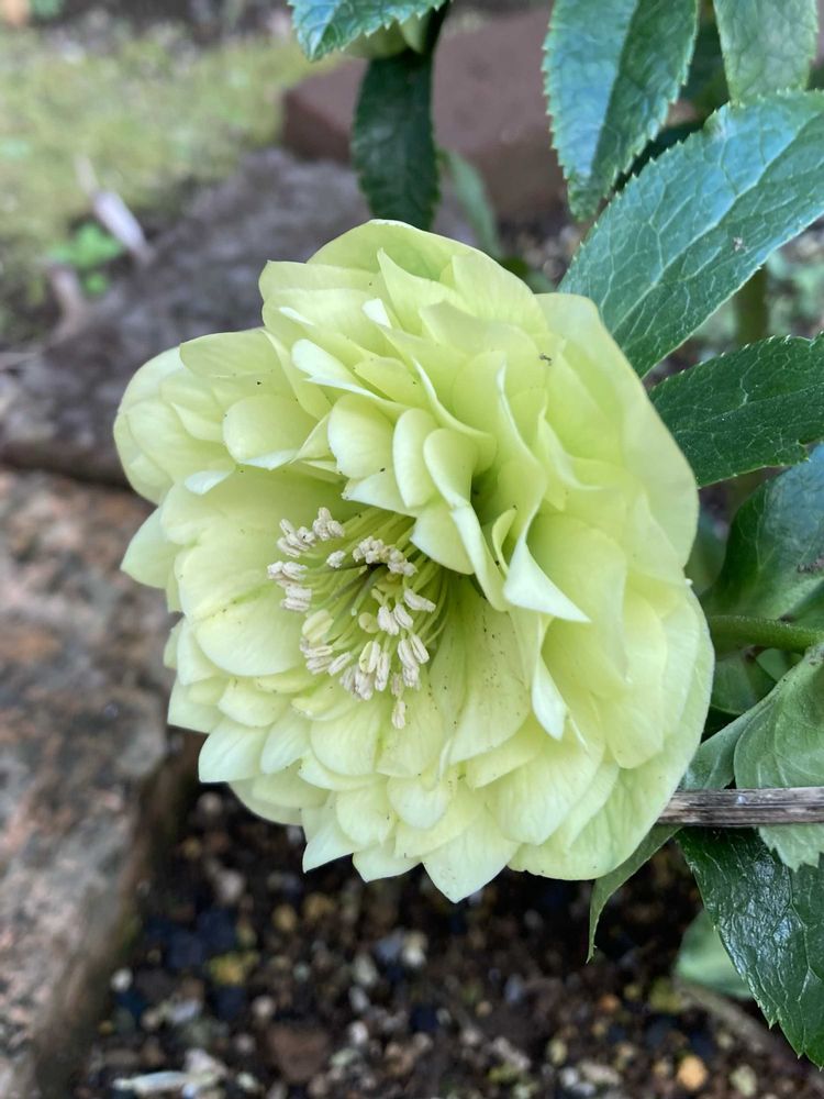地植えの八重咲きクリスマスローズ🥀Sale品で迎えたこの子も3年目になりました。今年も会えて嬉しいです🥰✨