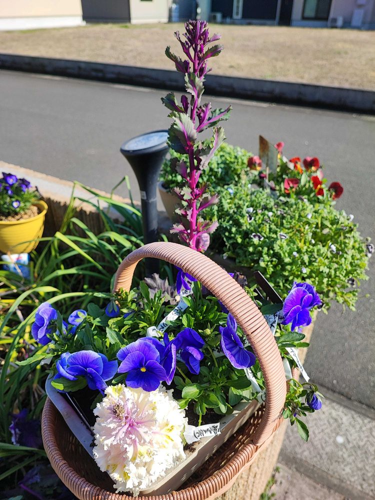 青いパンジーがいい仕事してますね💙