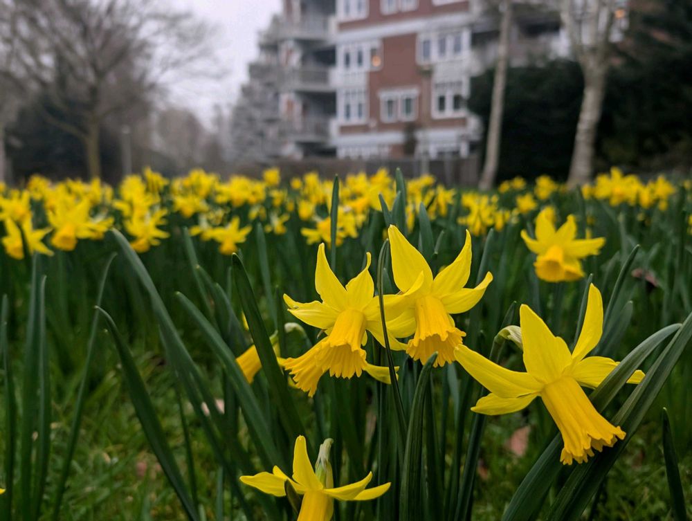 3枚目:水仙が満開です✨️色んな種類の水仙が植えられていて、チューリップが終わっても最後まで秋植え球根のお花達が咲いている間中咲いてます♪