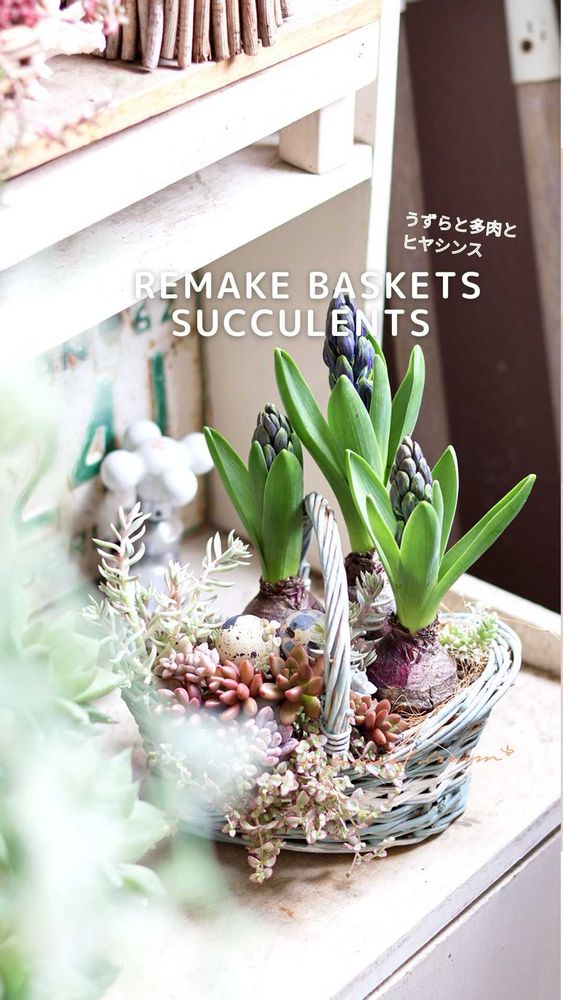 多肉とヒヤシンスとうずらのたまご。