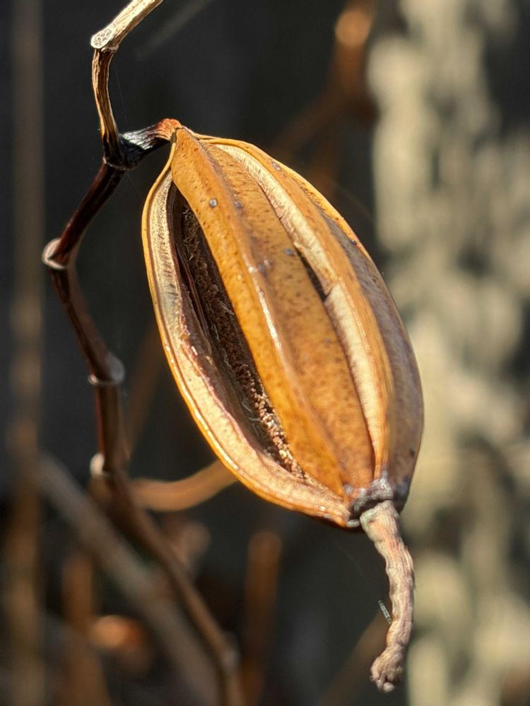紫蘭の実が弾けた姿。枯れ木も山の賑わい。