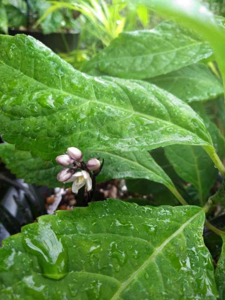 秋雨の中で、ふたつめの黒竜が山あじさいの葉からひょっこりはんと咲いていた(笑)
