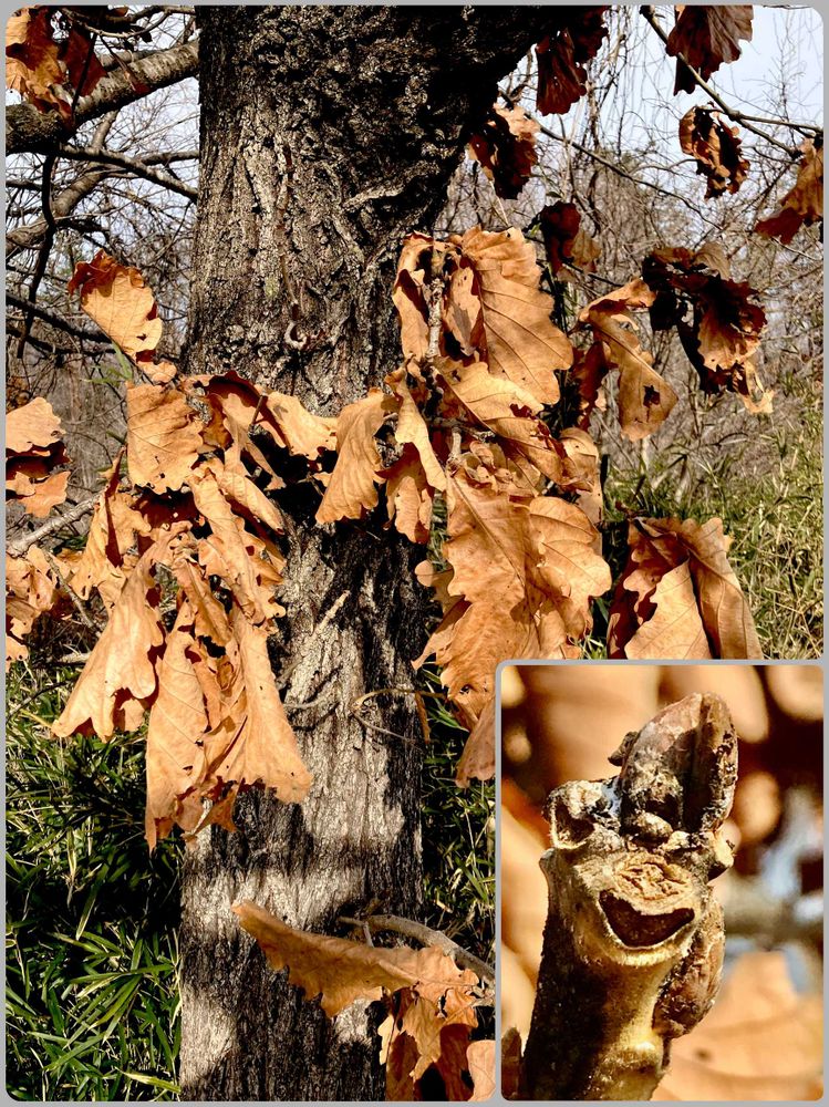 枯凋性とは 落葉樹でありながら冬に枯れた葉を枝に残す性質で 冬の間 周囲の木がすっかり葉を落としている中で、カサカサと茶色い葉をまとっている姿は独特の風情があります♪