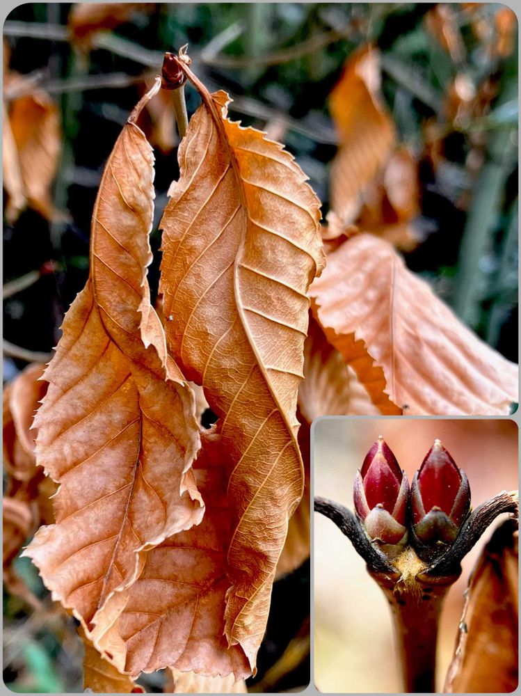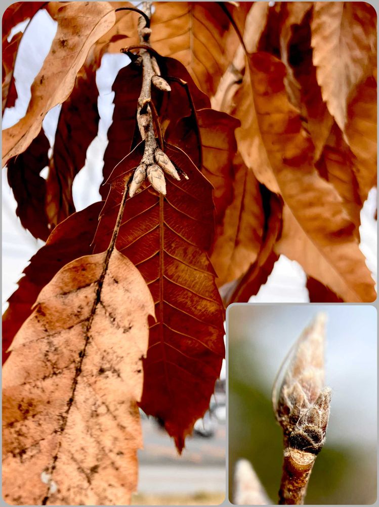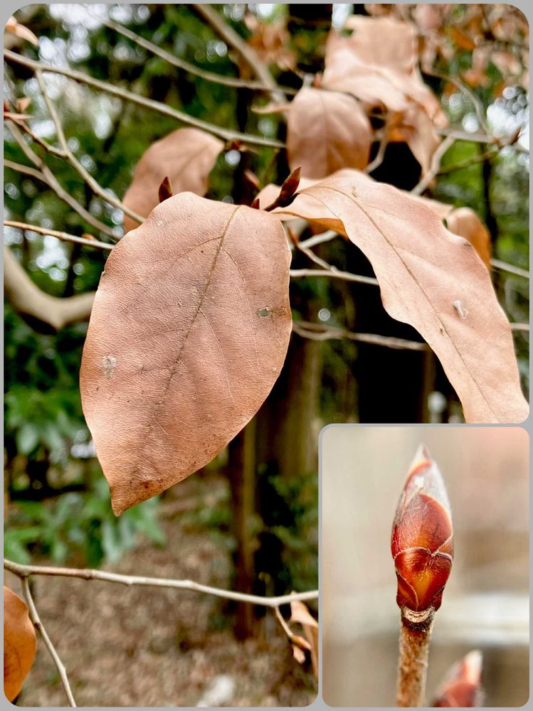 枯凋性の葉は主に新芽(冬芽)を守るようですが、似た葉が多いので↘️の冬芽でしっかり同定できます!