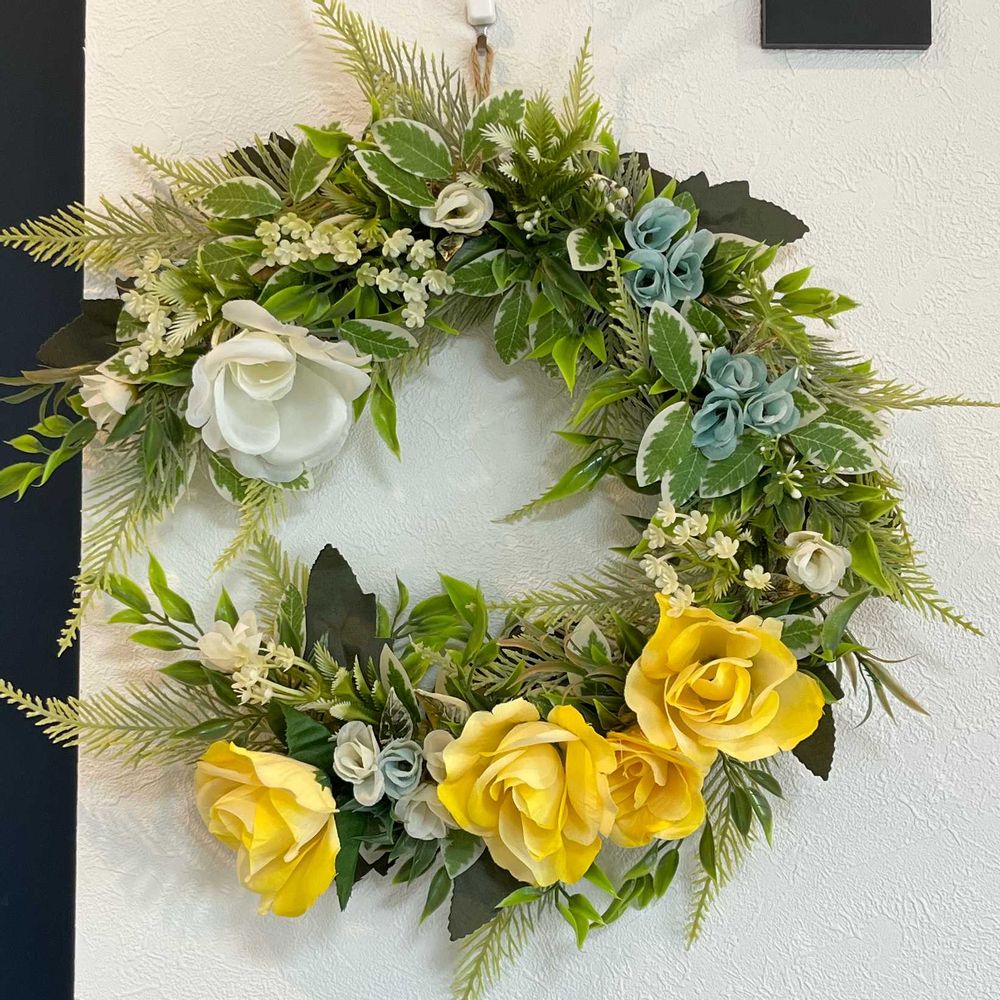 定番のドライリースもいいけど、フレッシュで華やかさのある花のリースもステキ!
