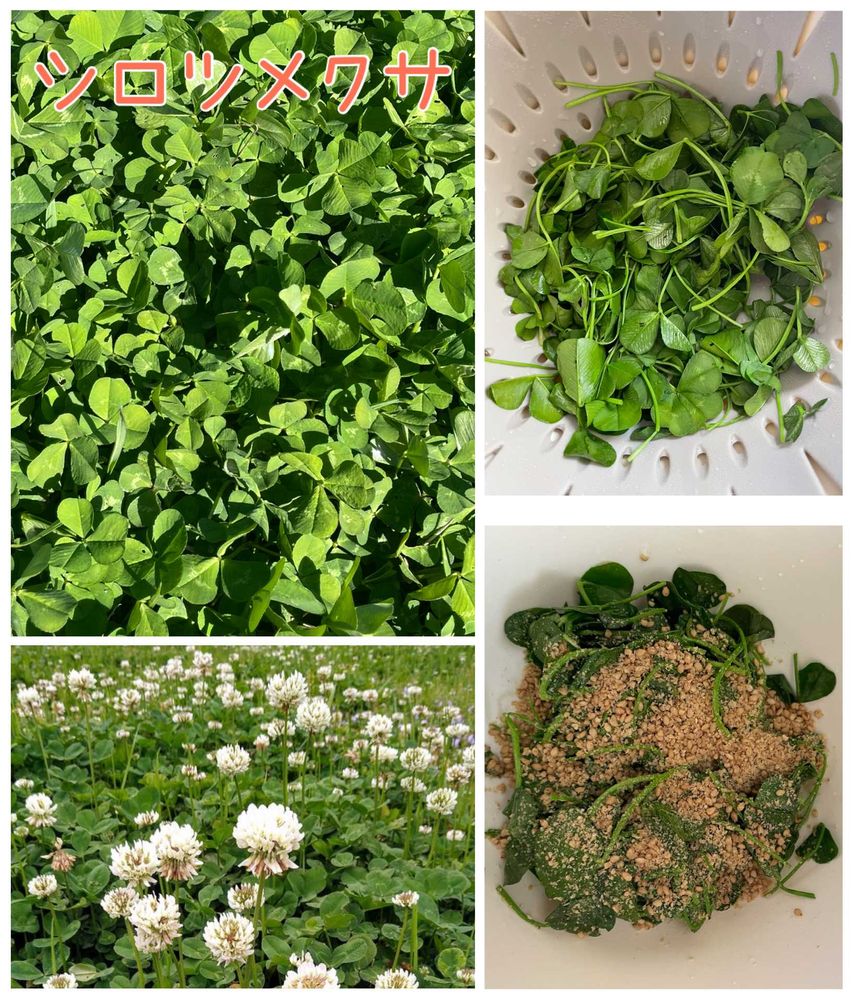 「(シロツメクサは)家畜の飼料として優れた作物となるだけでなく、葉と花は貴重なサバイバルフードでもあります。高タンパク質で、広く分布し、豊富に存在します。生の植物は、何世紀にもわたってサラダや葉物野菜を使った料理の添加物として使用されてきました」