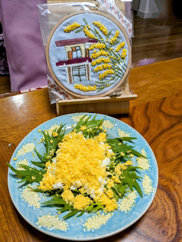 刺繍もミモザサラダもいいですねー❣️