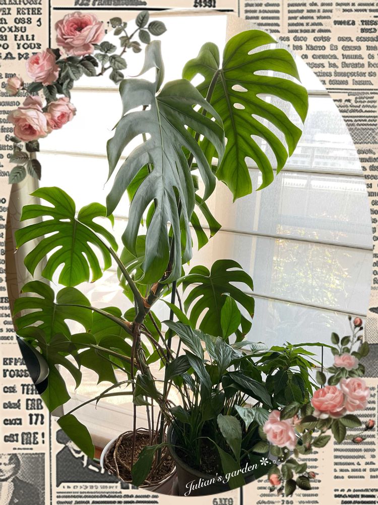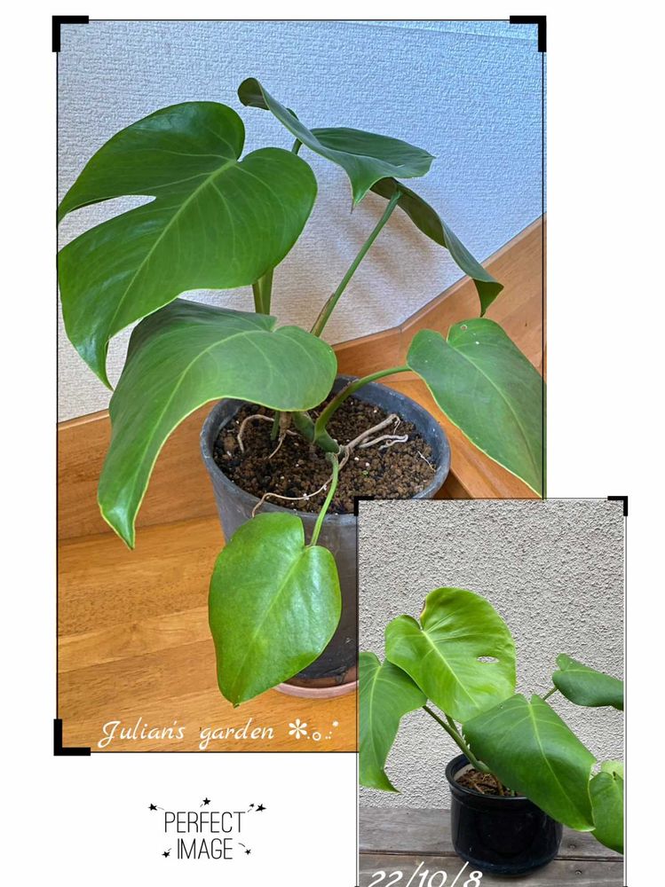 ①亡叔母が多分数年はそだてていて娘が引き継いで その後娘が天井くらいまであったのを 短く切り 22年に家に来た モンステラが3回の鉢増しで私の身長くらいになりました😆😁