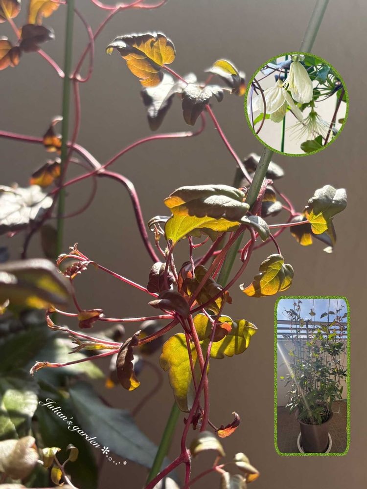 ④4年目の冬咲クレマチス シルホサジングルベル🔔の赤い柔らかい新芽が沢山出てきています😉