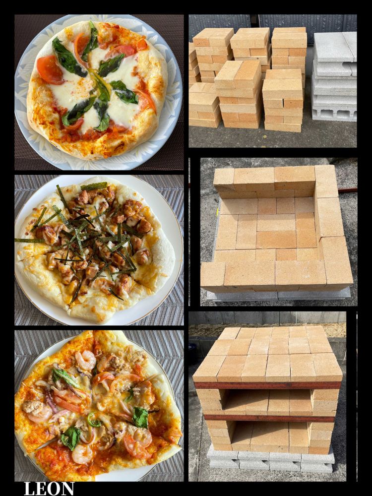 金曜日に孫と一緒にネットを見ながら、耐火レンガでピザ窯を作りました🍕🍕