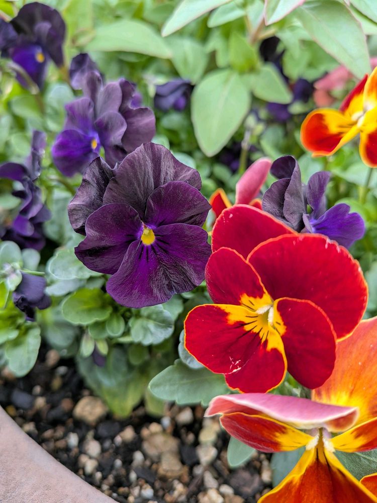 ブラック🖤と赤❤️、おしゃれなビオラが花数が増えて、嬉しいですね🎶