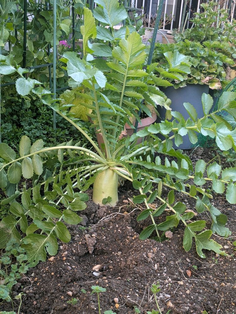 最後の大根も薹立ちして来ました。小松菜のとう立ちは、お浸しで使うから嬉しいです。