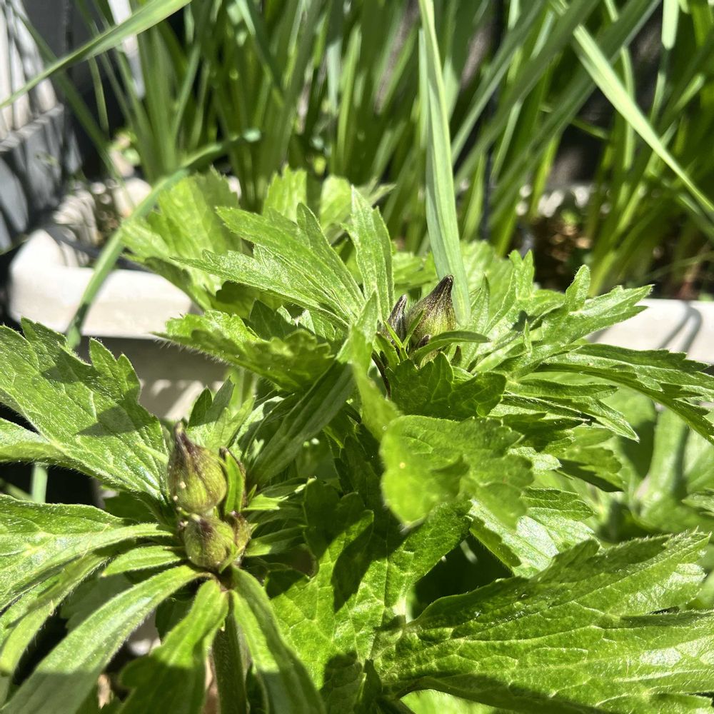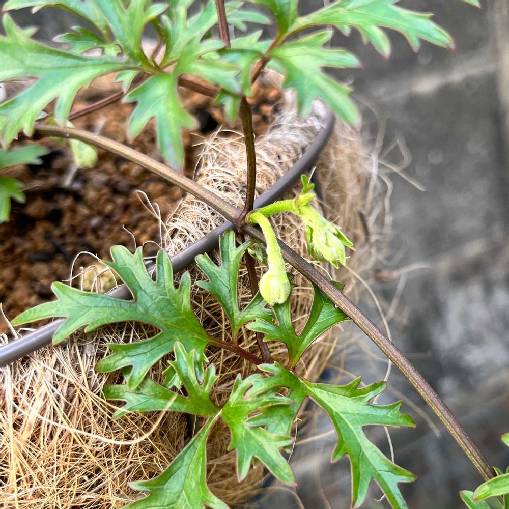 フォステリー系クレマチスを3つ並べてるのですが、この花芽だけフライング気味です🤭