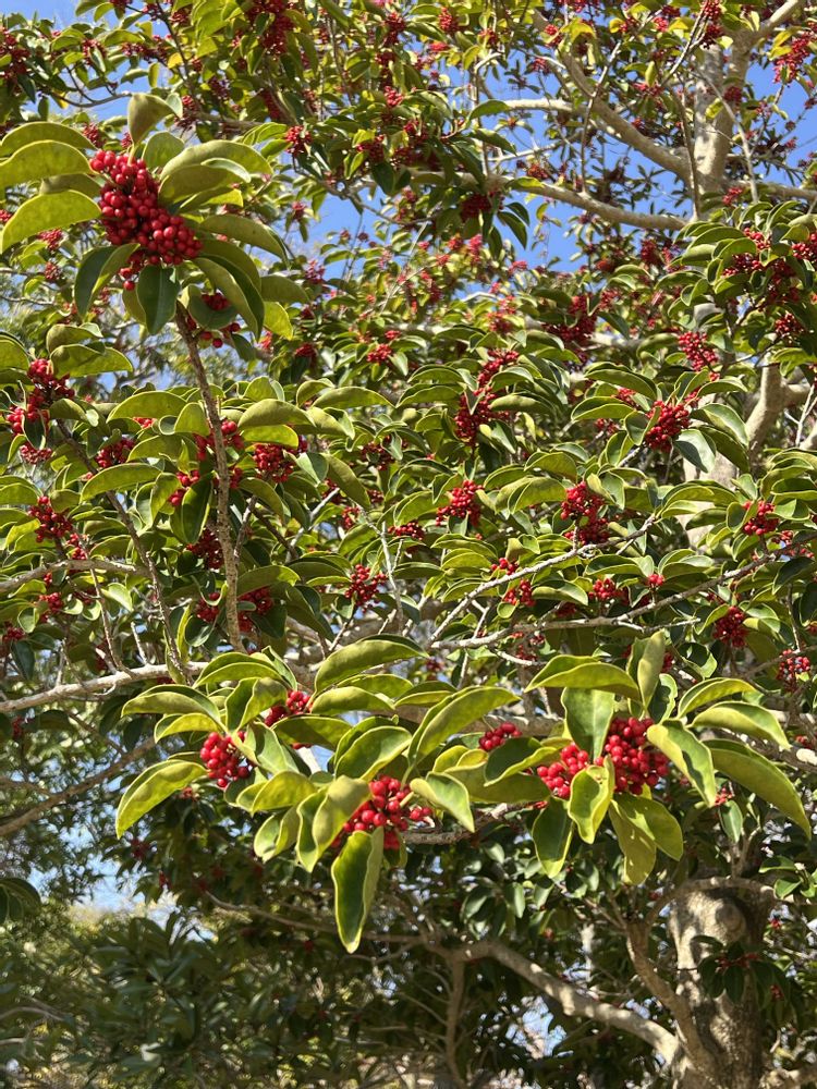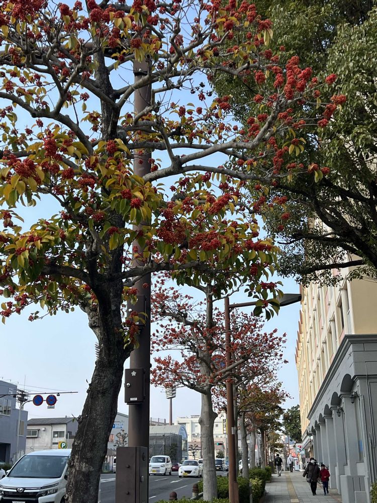 クロガネモチだと思うのですが、長崎市内の街路樹にはベニ珊瑚のような実がたわわになったこちらの木がずらりと並んで何とも麗しい風情を醸し出しています。