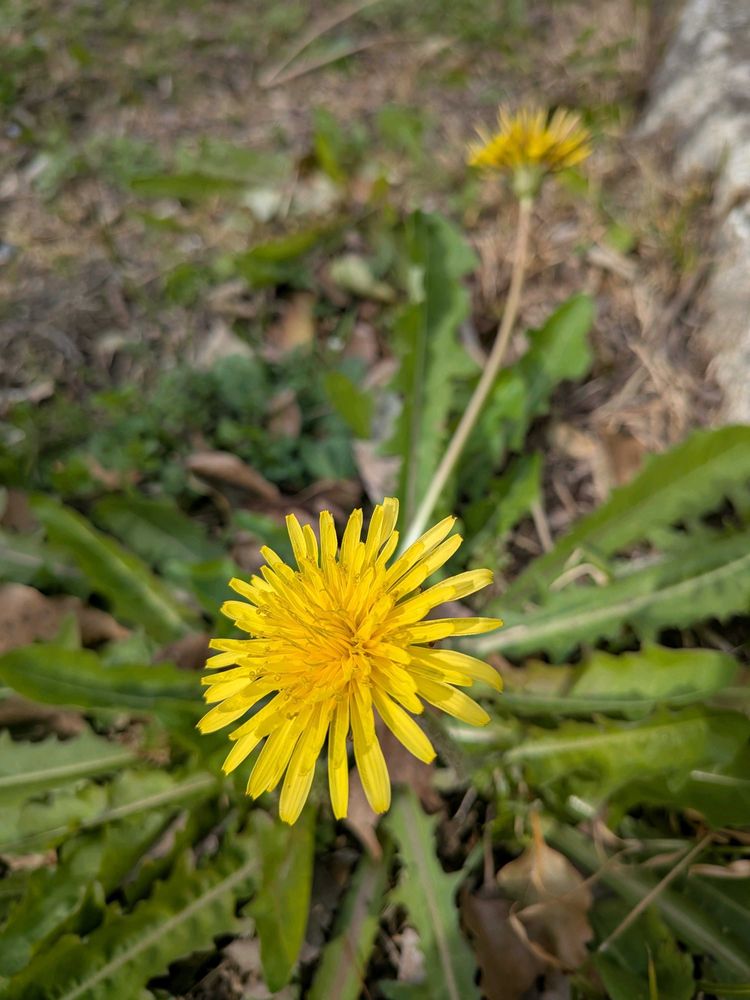 私の住む地方ではシロバナタンポポは見られません とても憧れます✨裏庭で見つけたタンポポは葉のギザギザが細いので大切にしたいです 蕾が一つありますが多分黄色でしょう よく見るタンポポは葉の幅も広いですね