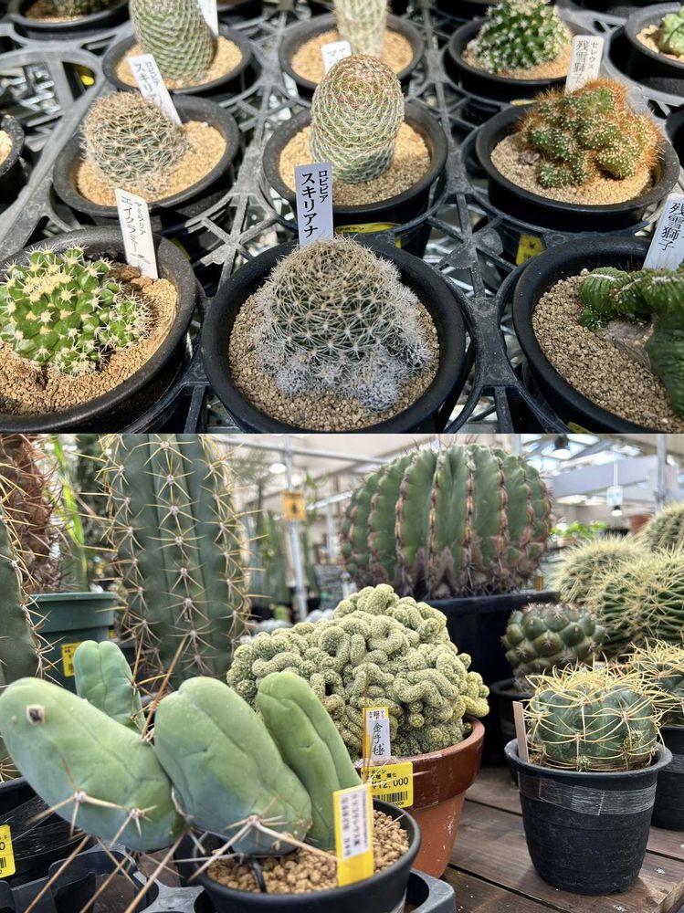 見るほどに精緻な幾何学模様や摩訶不思議な形状👀✨。ここは植物園ではなく入園料無料の園芸店。売り物だからベストな管理状態な上に品定め出来て、悩めば飼育員さんに相談できて、1,980円とかで買えてしまうからびっくり((((;゚Д゚))))