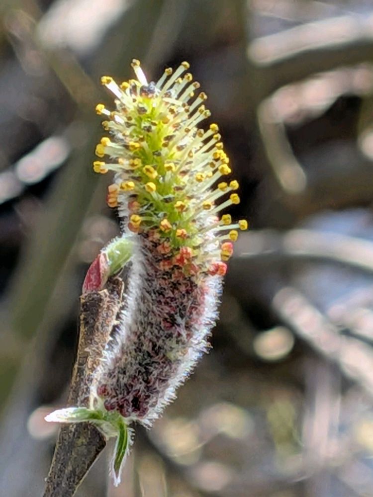 ネコヤナギの雄花は、色が変わっていって、面白いと思いました。