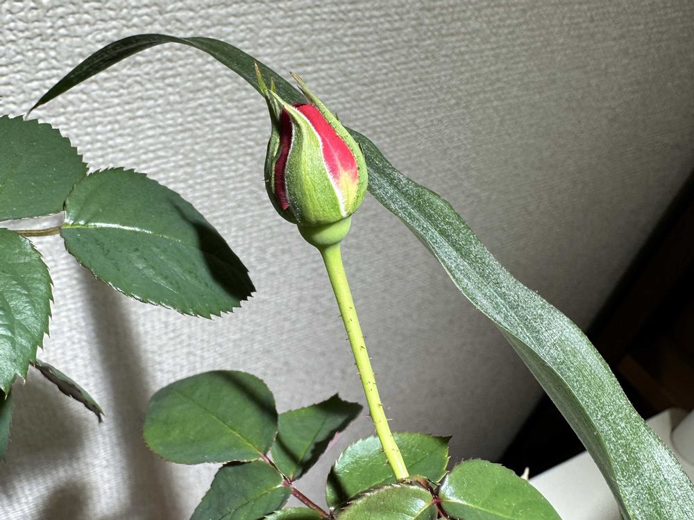 お部屋で育てるバラさん蕾が色付いて来ましたね🌹