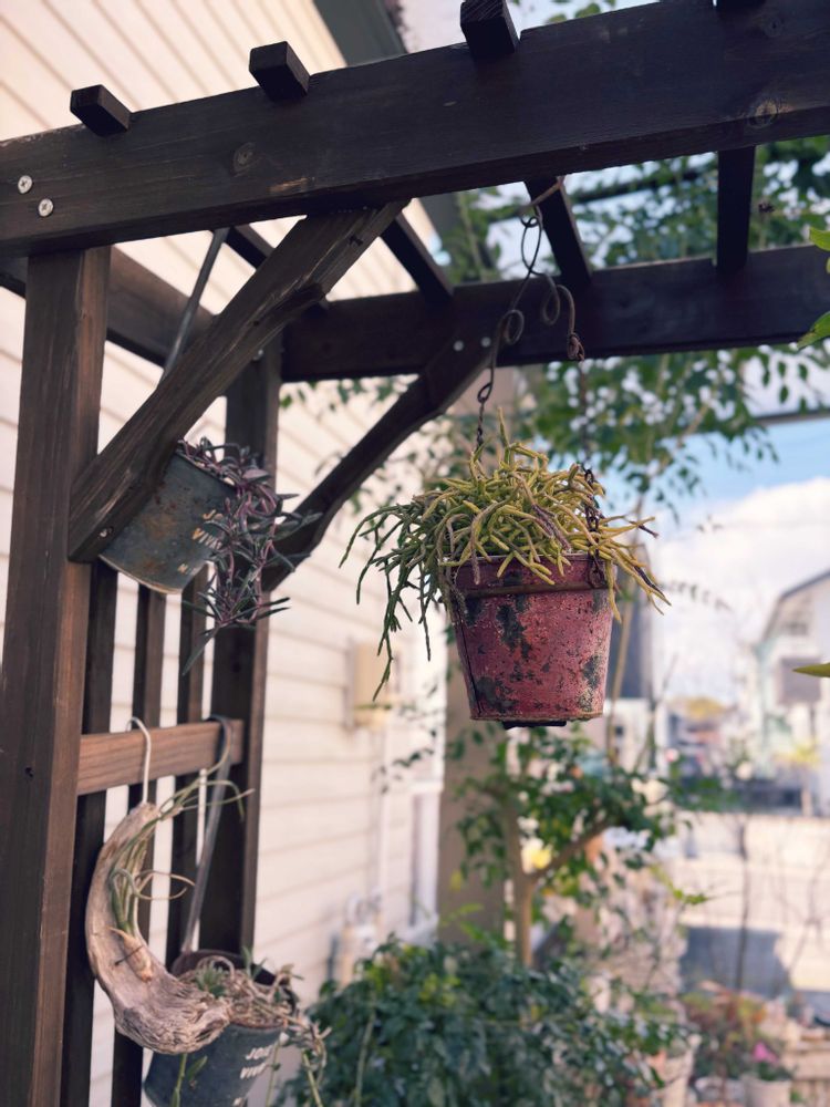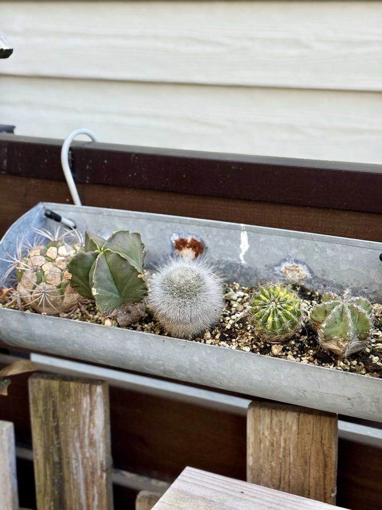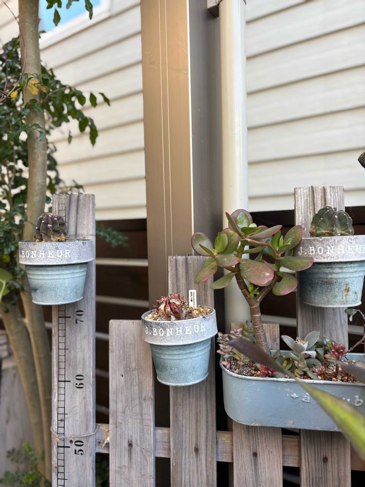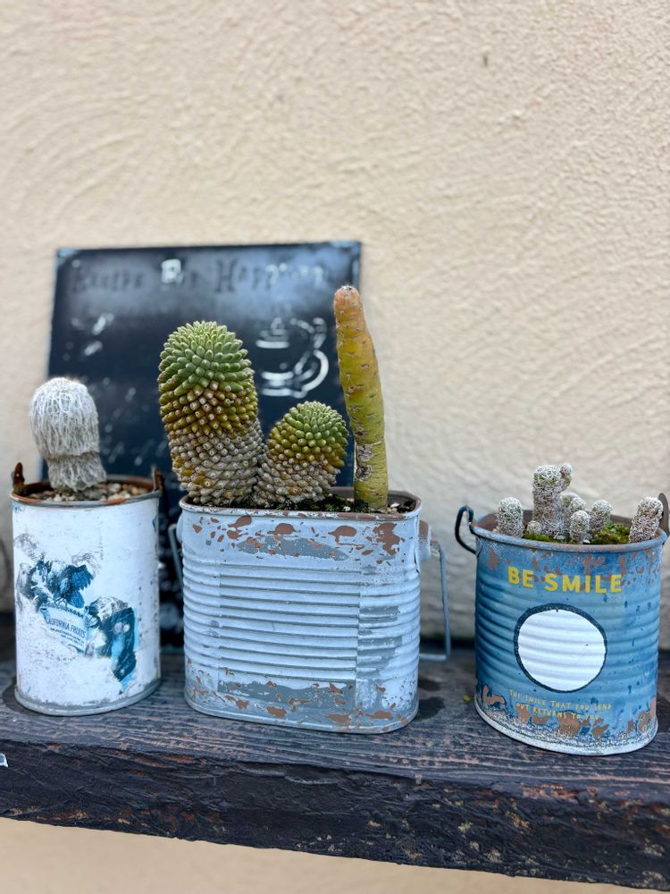 何年か使ってて底が抜けちゃったのも多く、最近は耐久性を考えて買ってないんですけど、このサボテンたちを植えた頃はブリキばかり買ってましたね😊