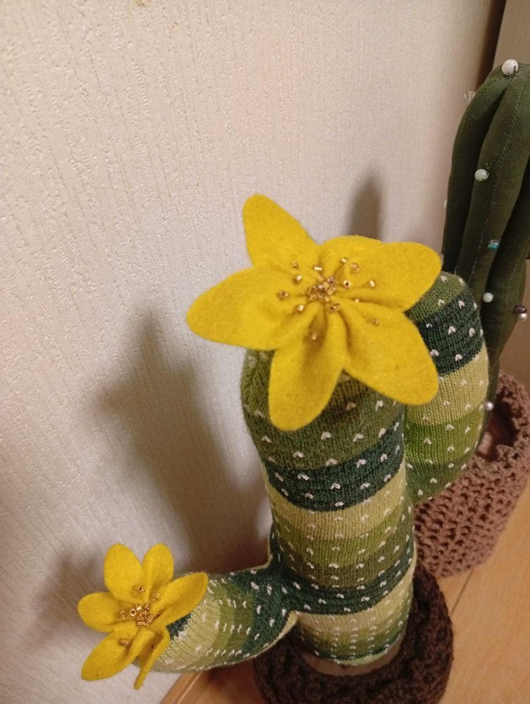 お花にはゴールドのビーズを縫い付けてゴージャス(?)に🌵