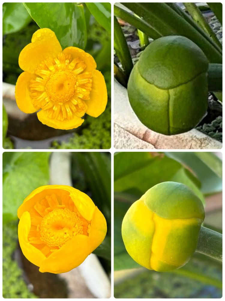 昨年のコウホネの開花ステップです。時計回りで可愛い黄色のお花が咲きます。