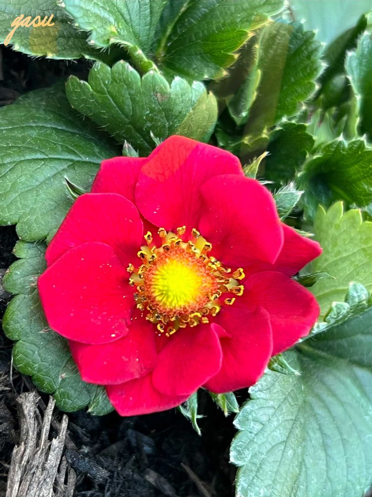 赤花イチゴの花が開いたら結構ちゃんと可愛くて😃
