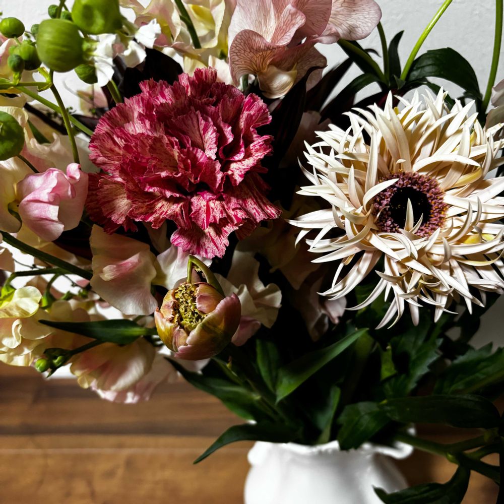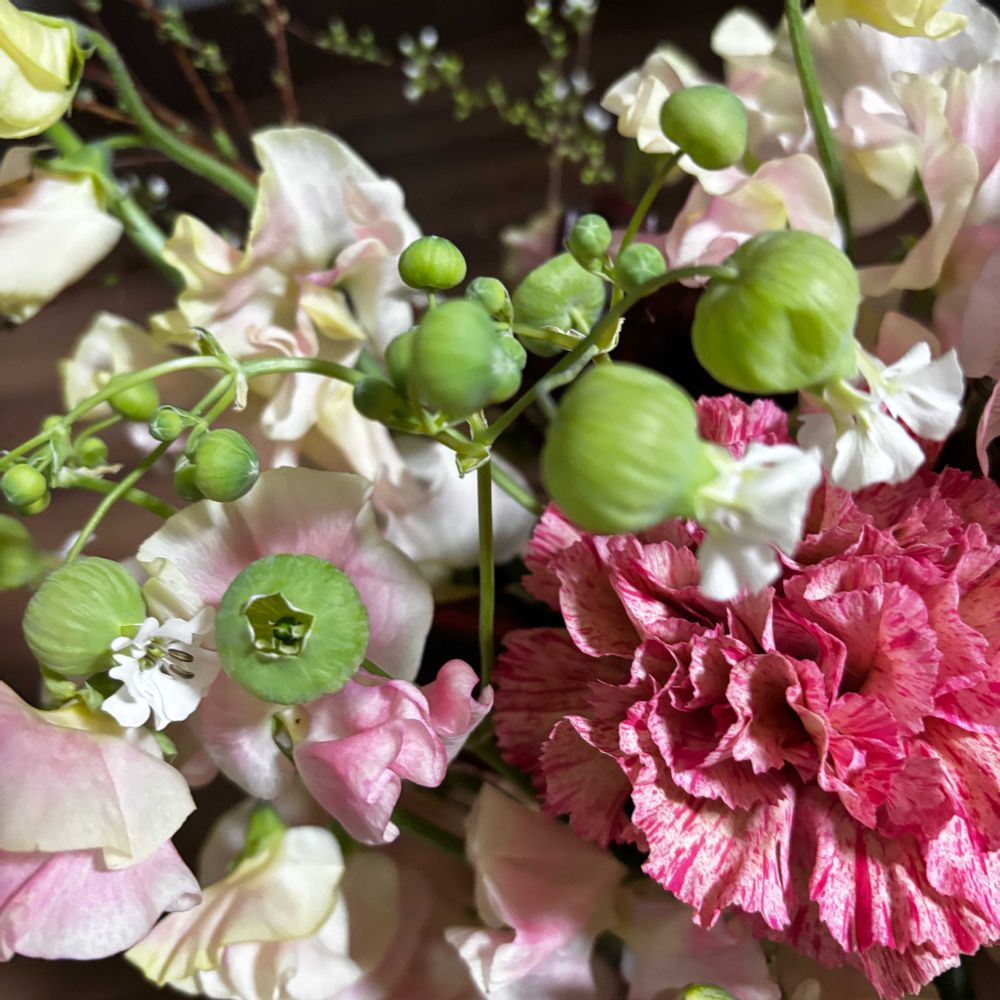 今月のアレンジ教室はブーケでしたボリュームたっぷりで素敵な色合いのお花がトータルされていていい香りにうっとりです😍
