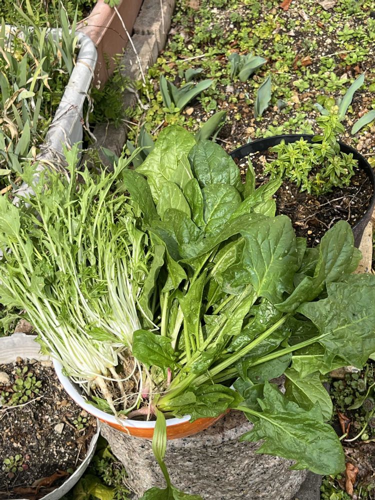 間引き無しで育ったほうれん草と水菜ですが、そこそこ良い出来でした😆