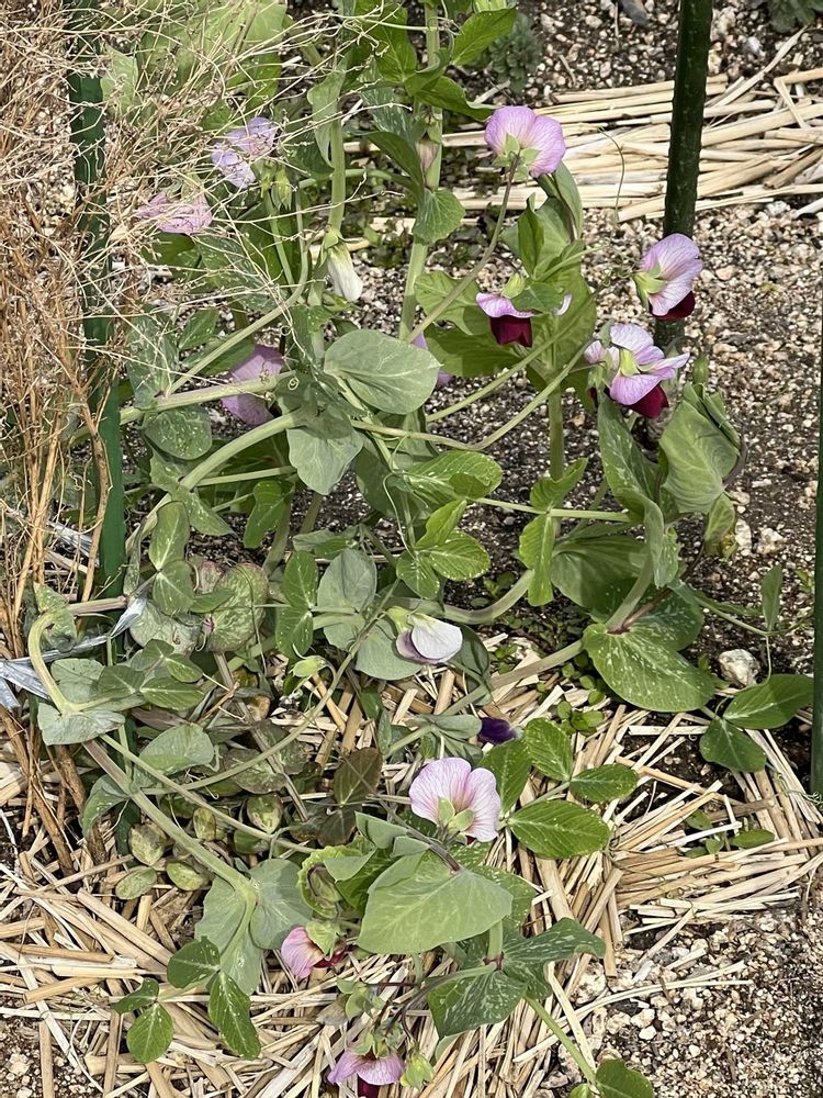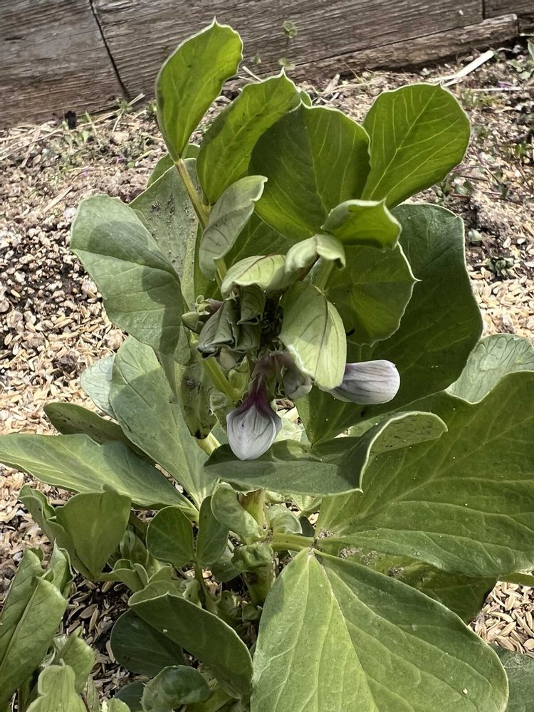 キヌサヤとそら豆に花が咲いています🫛