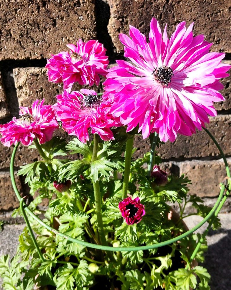 ③八重アネモネ オーロラ 倒れ防止にワイヤー枠着けました