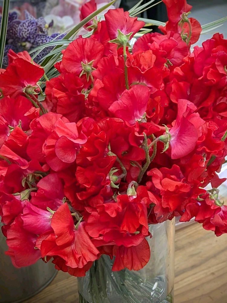 真っ赤なスイトピーも可愛いですね。ピンクはよく見ますが、赤はあまり見た事ないかも。˶˃ᴗ˂˶